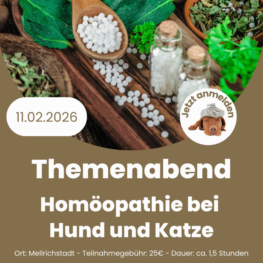Unser Themenabend ist die perfekte Gelegenheit, mehr über Homöopathie bei Hunden und Katzen zu erfahren und wertvolle Infos für den Alltag mitzunehmen. Egal, ob du bereits auf natürliche Heilmethoden setzt oder einfach neugierig bist.